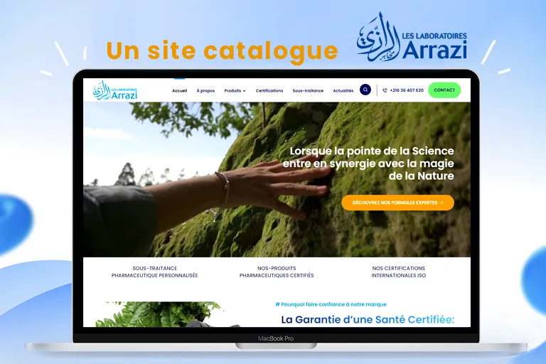 Notre agence web en Tunisie a eu l’honneur de collaborer avec les Laboratoires Arrazi pour concevoir et développer leur site catalogue produits labo-arrazi.tn, une vitrine digitale professionnelle dédiée à la présentation de leurs gammes de compléments alimentaires et produits naturels certifiés, sans panier ni prix — un choix délibéré orienté vers une approche B2B et prescription médicale.